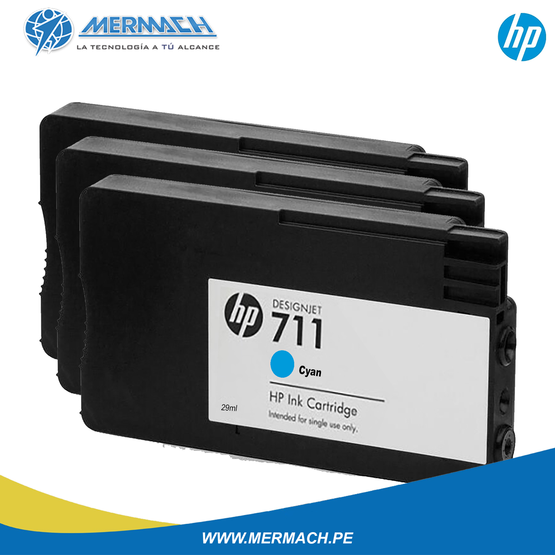 Tinta HP CZ134A – 711 de color Cyan TriPack, Original de 29×3=87 mililitros.