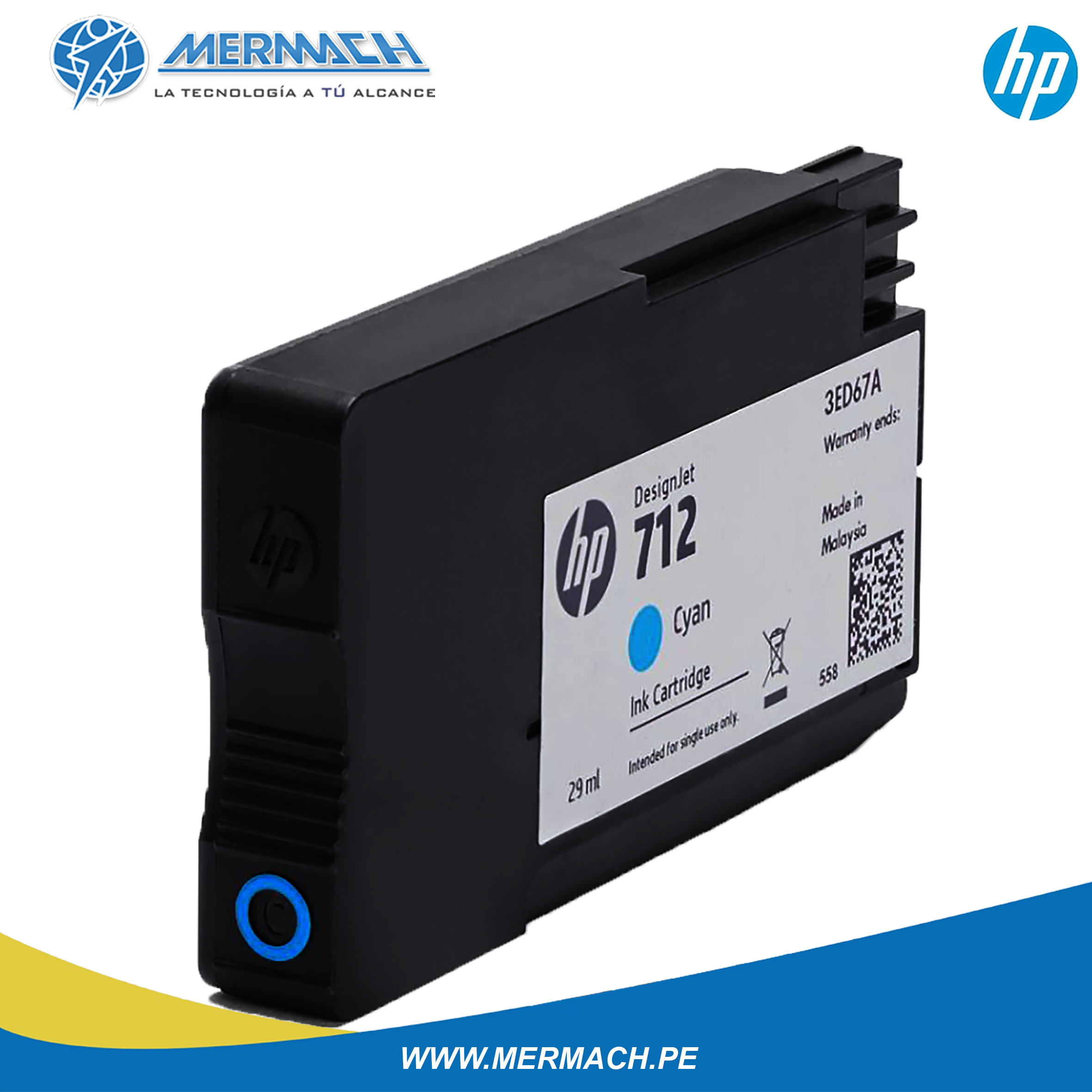 Tinta HP 3ED67A – 712 de color Cyan, Original de 29 mililitros.