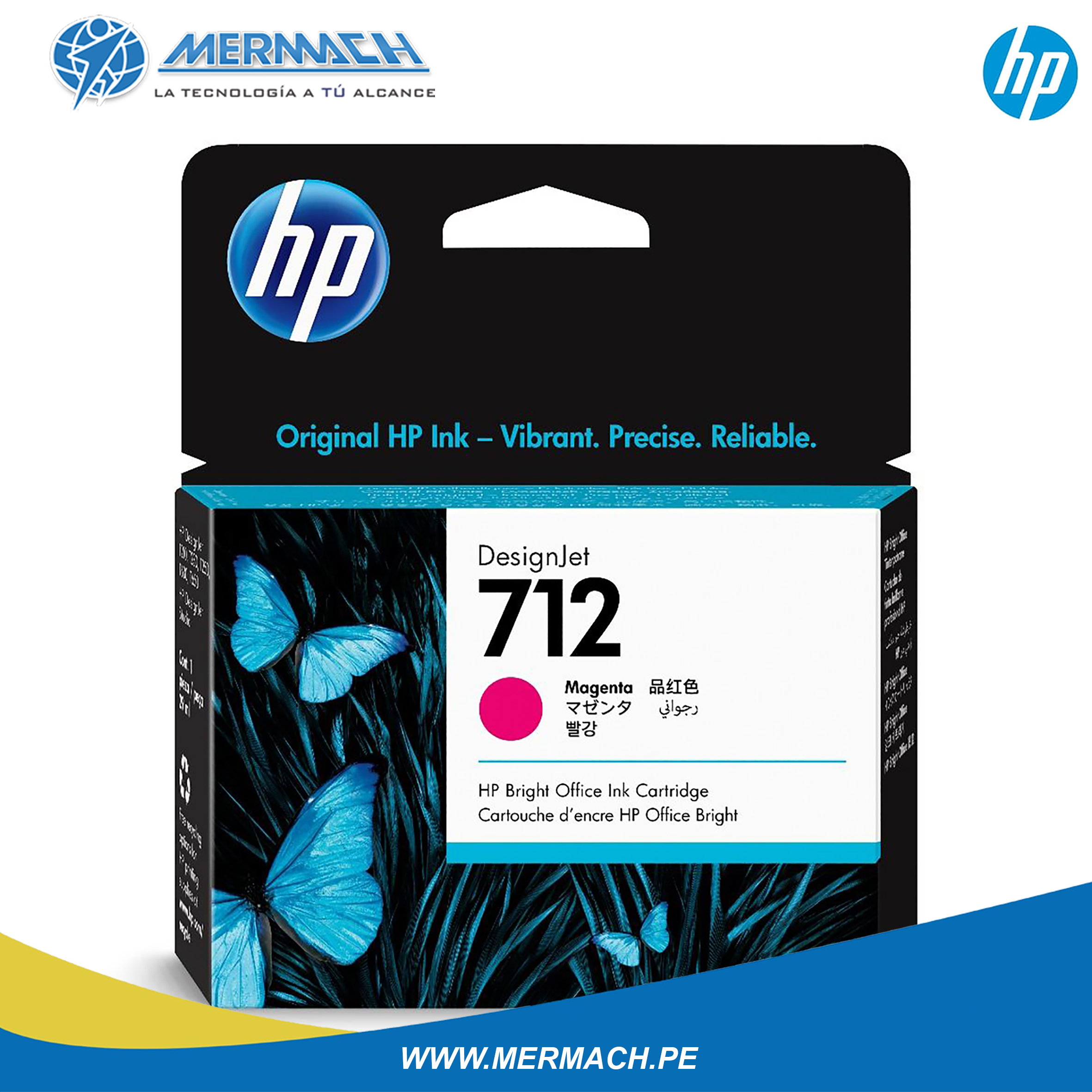 Tinta HP 3ED68A – 712  de color Magenta, Original de 29 mililitros.