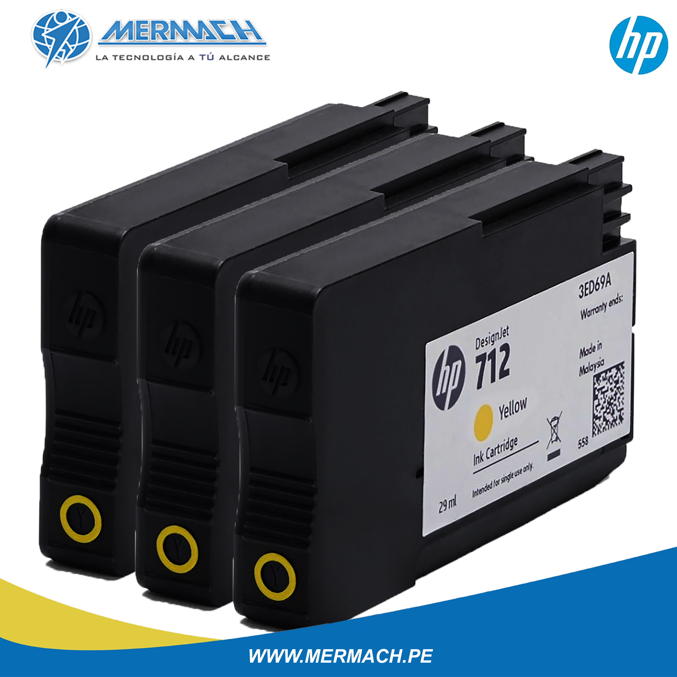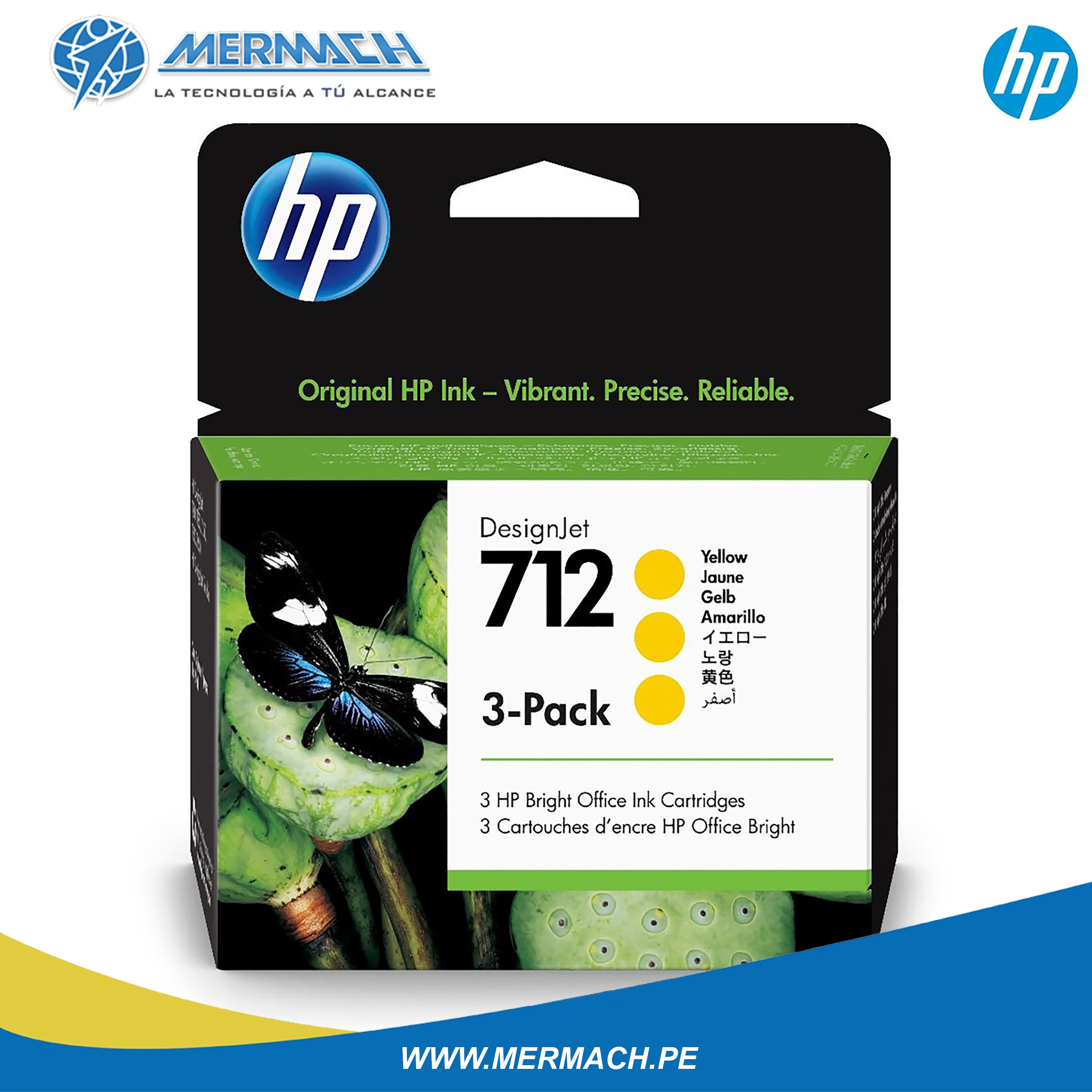 Tinta HP 3ED79A – 712  de color Amarillo TriPack, Original de 29×3=87 mililitros.