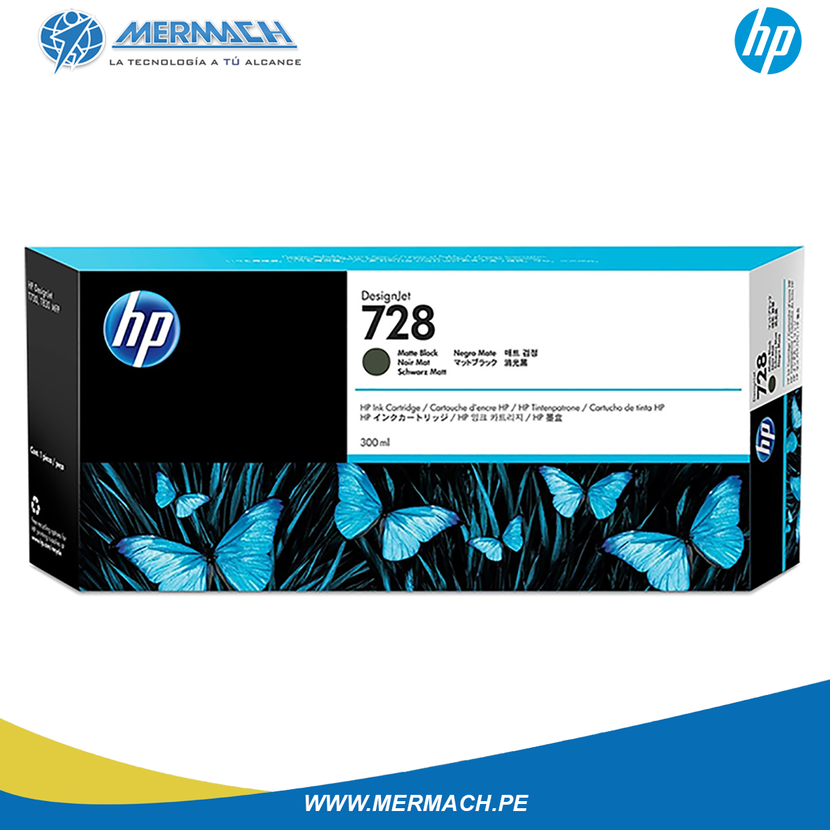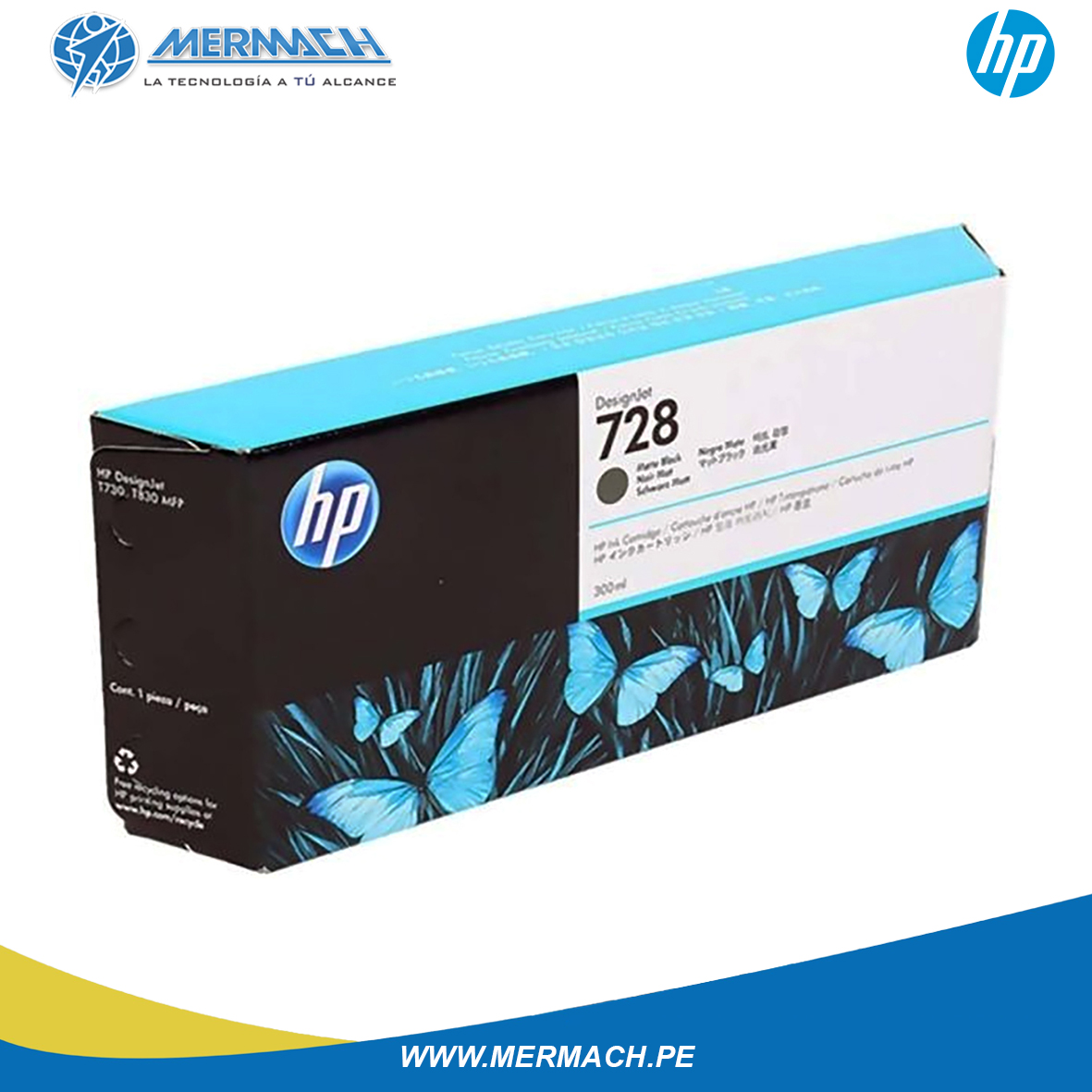 Tinta HP F9J68A – 728 de color Matte Black, de alto rendimiento Original de 300 mililitros.