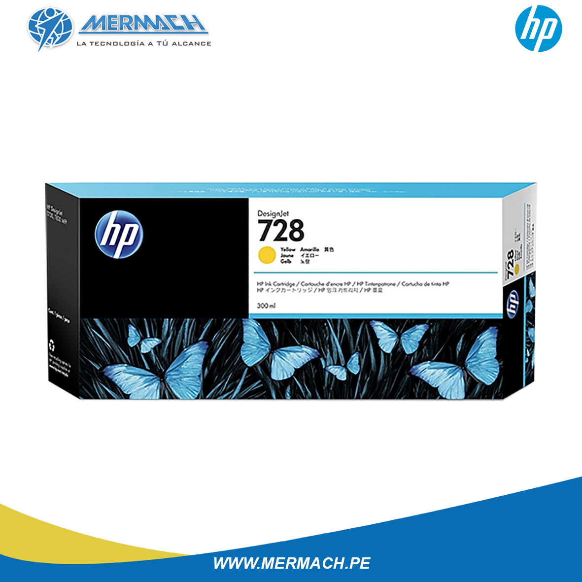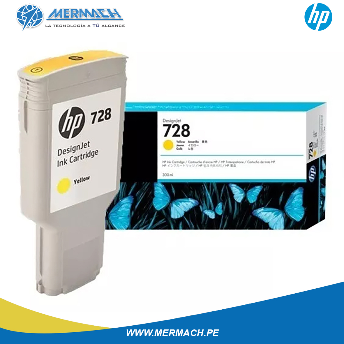 Tinta HP F9K15A – 728 de color Amarillo, de alto rendimiento Original de 300 mililitros.