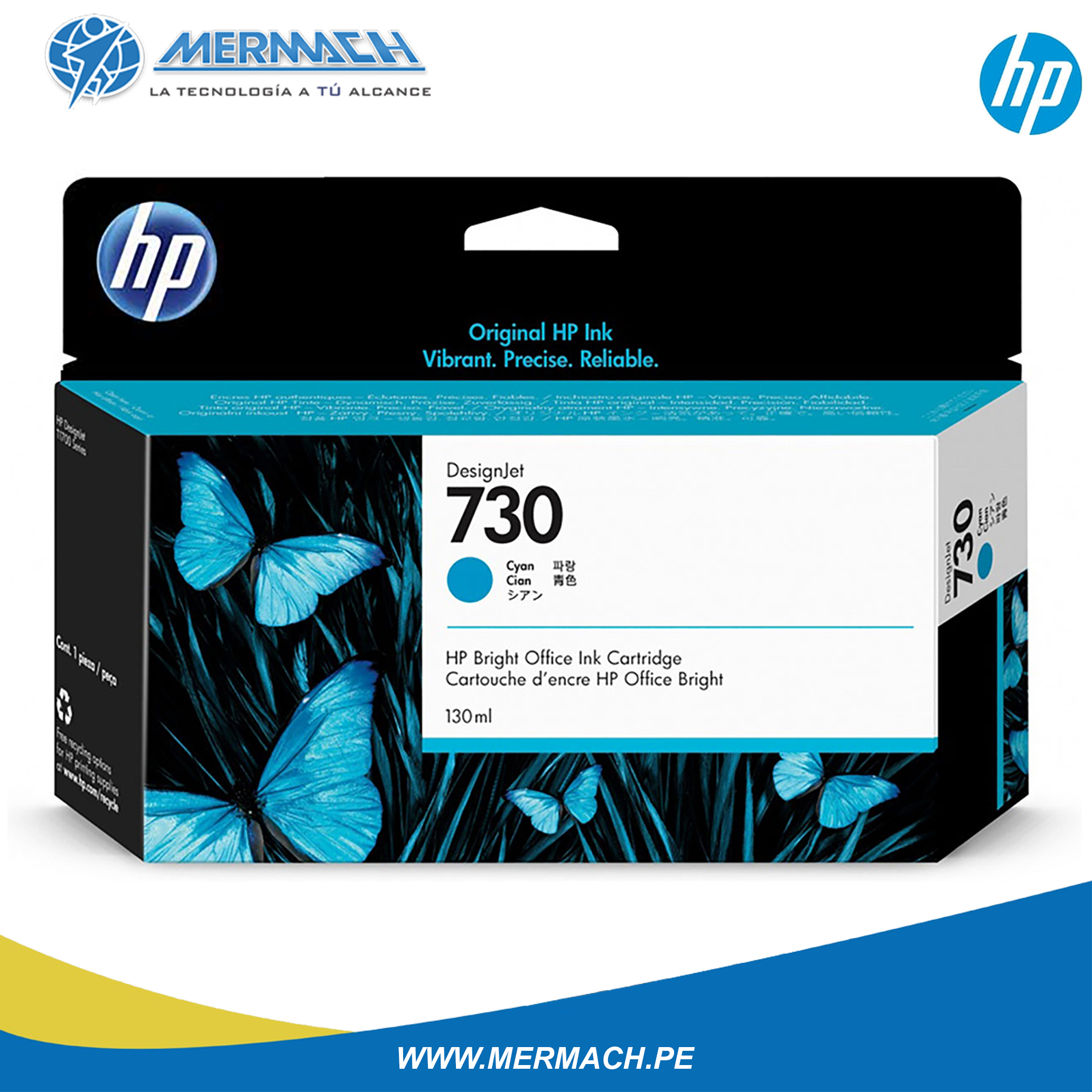 Tinta HP P2V62A – 730 de color Cyan, Original de 130 mililitros.