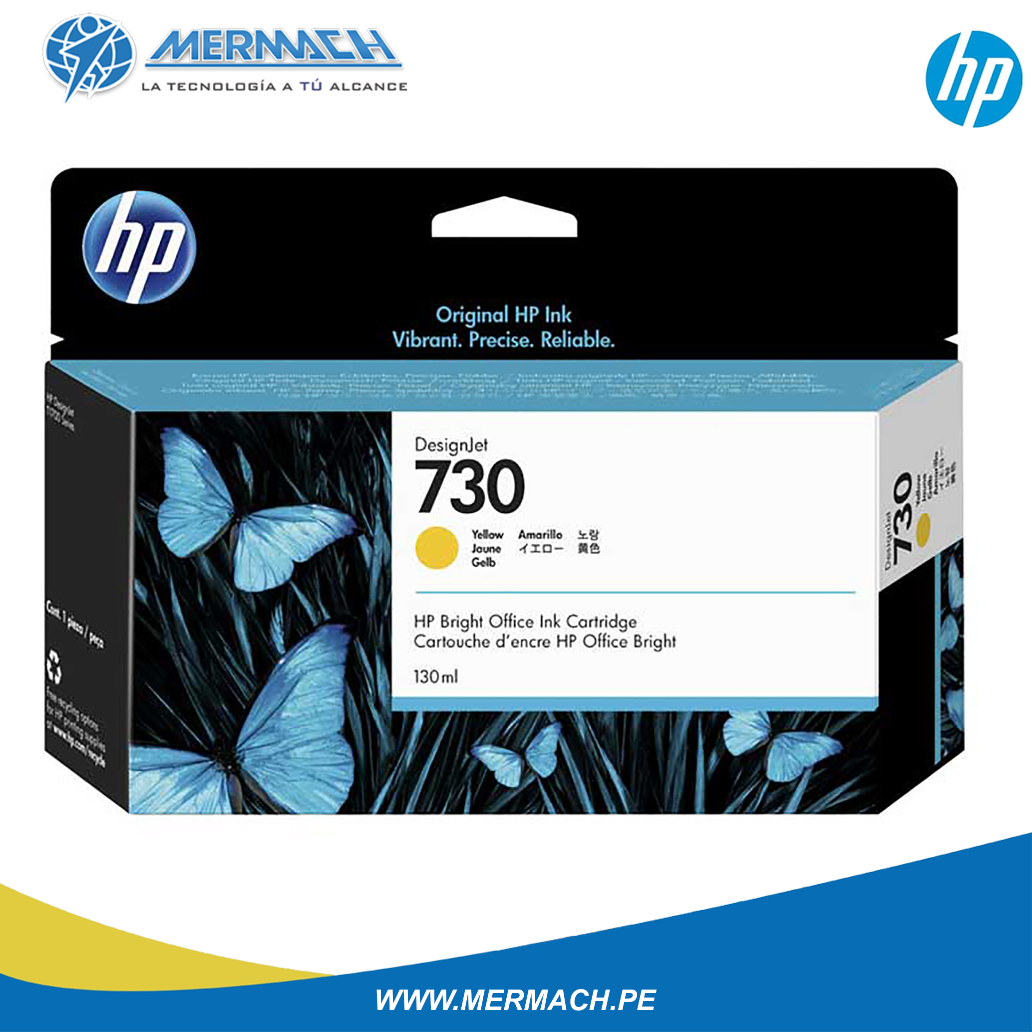 TINTA HP 730 P2V64A YELLOW 130ML DESIGNJET T1600/T1700/T2600MFP