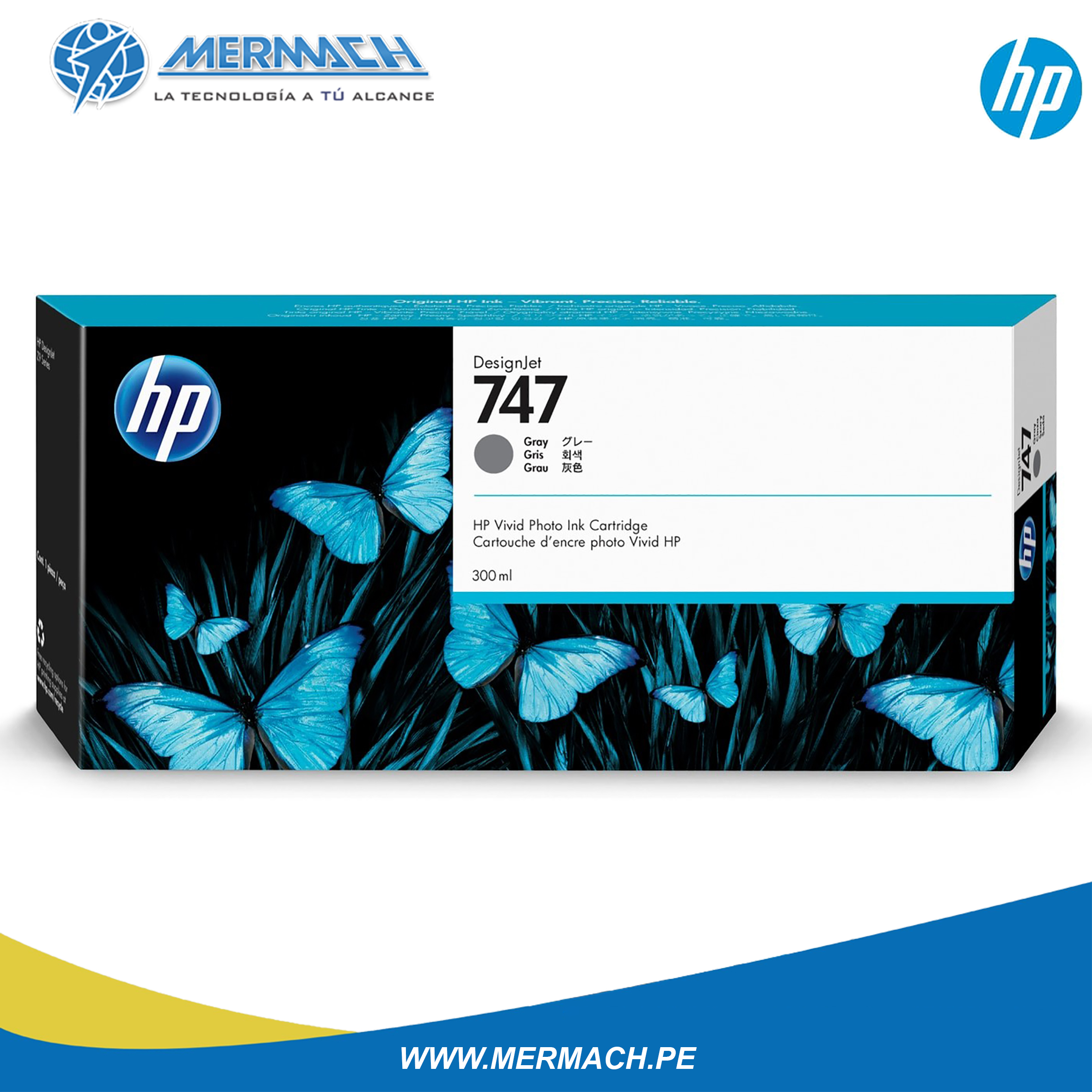 Tinta HP P2V86A – 747 de color Gris, de Alto Rendimiento Original de 300 mililitros.