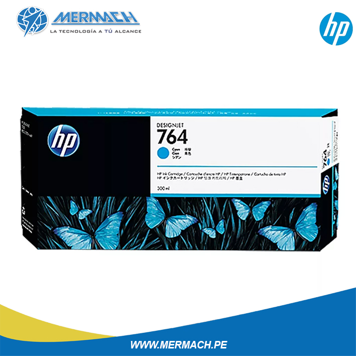 Tinta HP C1Q13A – 764 de color Cyan, de Alto Rendimiento Original de 300 mililitros.
