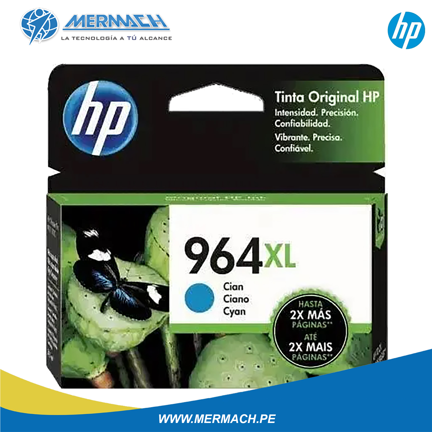 Tinta HP 3JA54AL – 964XL  de color Cyan, Original de Mayor Capacidad.