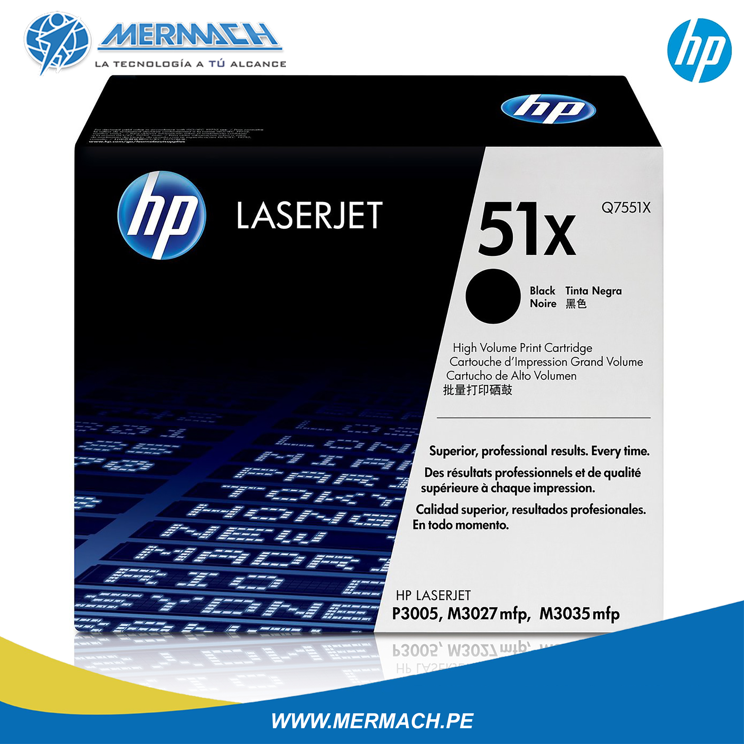 Tóner HP 51X Q7551X Negro rendimiento aprox 13,000 paginas